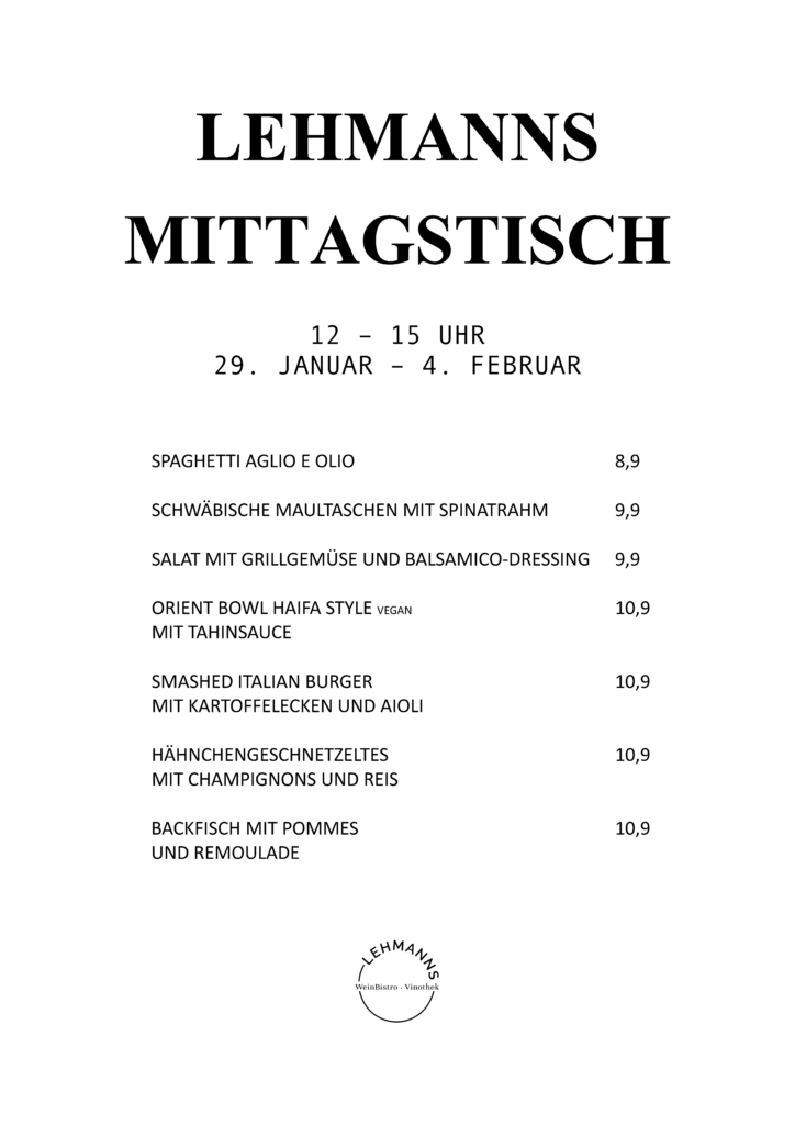 Der Mittagstisch vom 29.01. – 04.02.2024