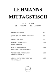 Wir haben wieder einen tollen Mittagstisch für euch.
