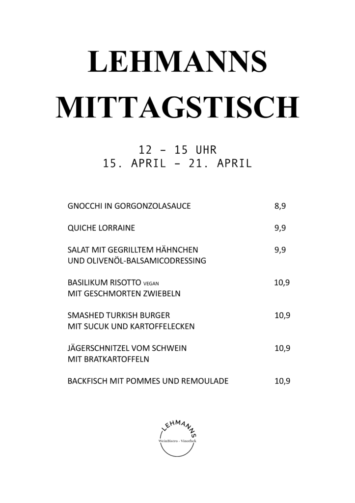 Mittagstisch vom 15. APRIL – 21. APRIL