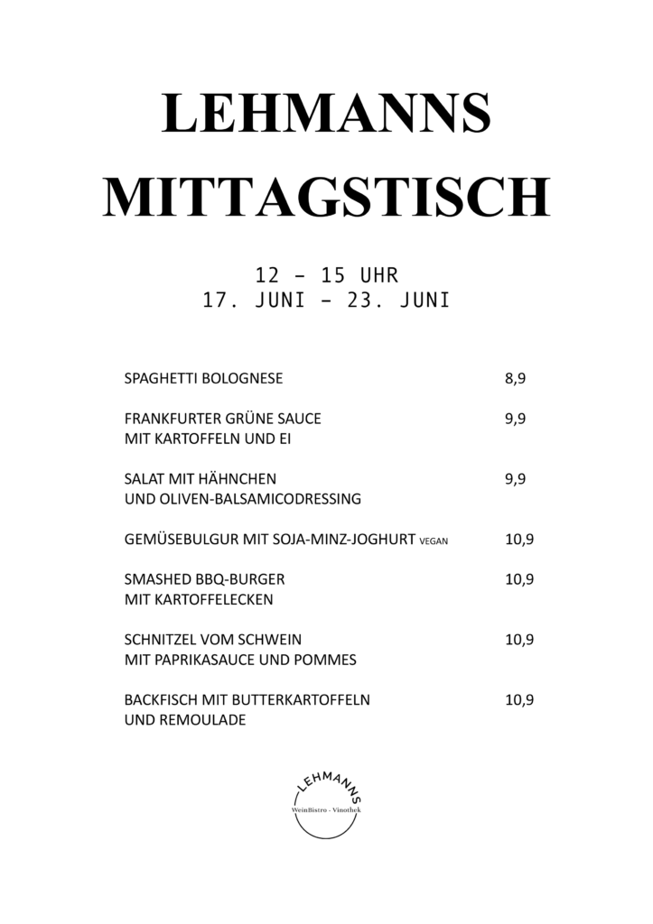 Mittagstisch vom 17. JUNI – 23. JUNI