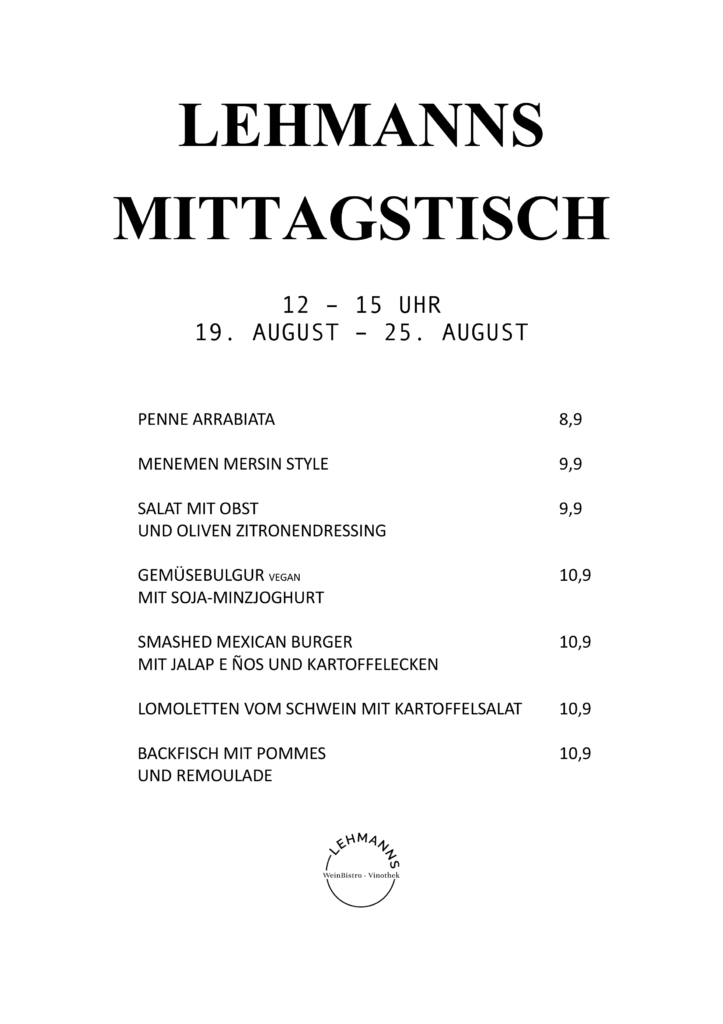 Mittagstisch vom 19. AUGUST – 25. AUGUST