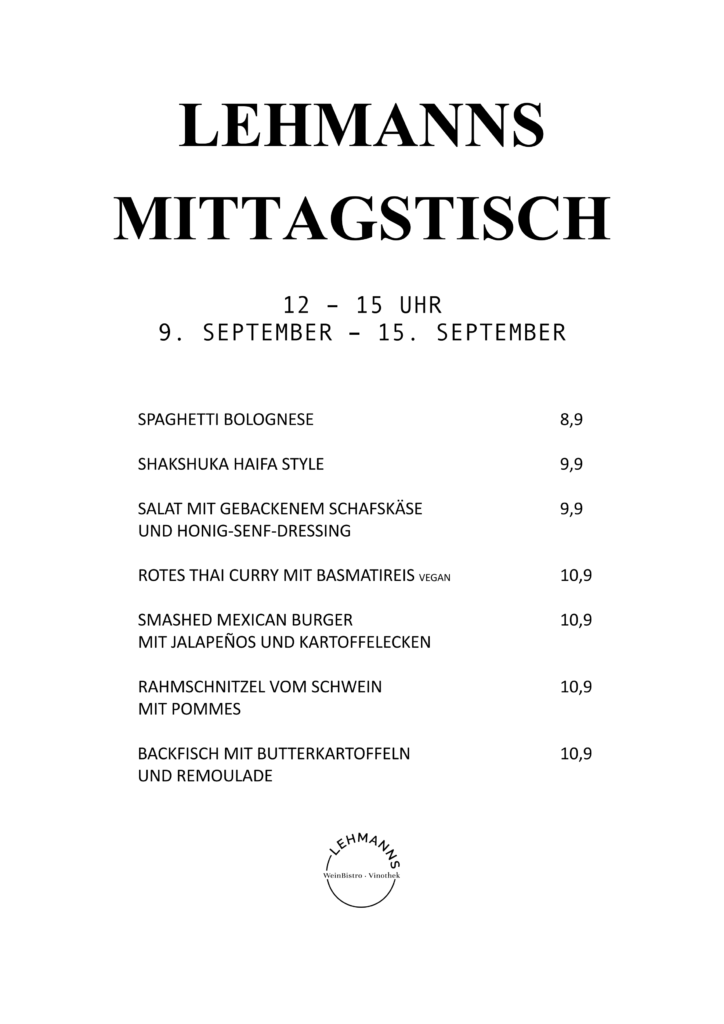 Mittagstisch vom 9. SEPTEMBER – 15. SEPTEMBER