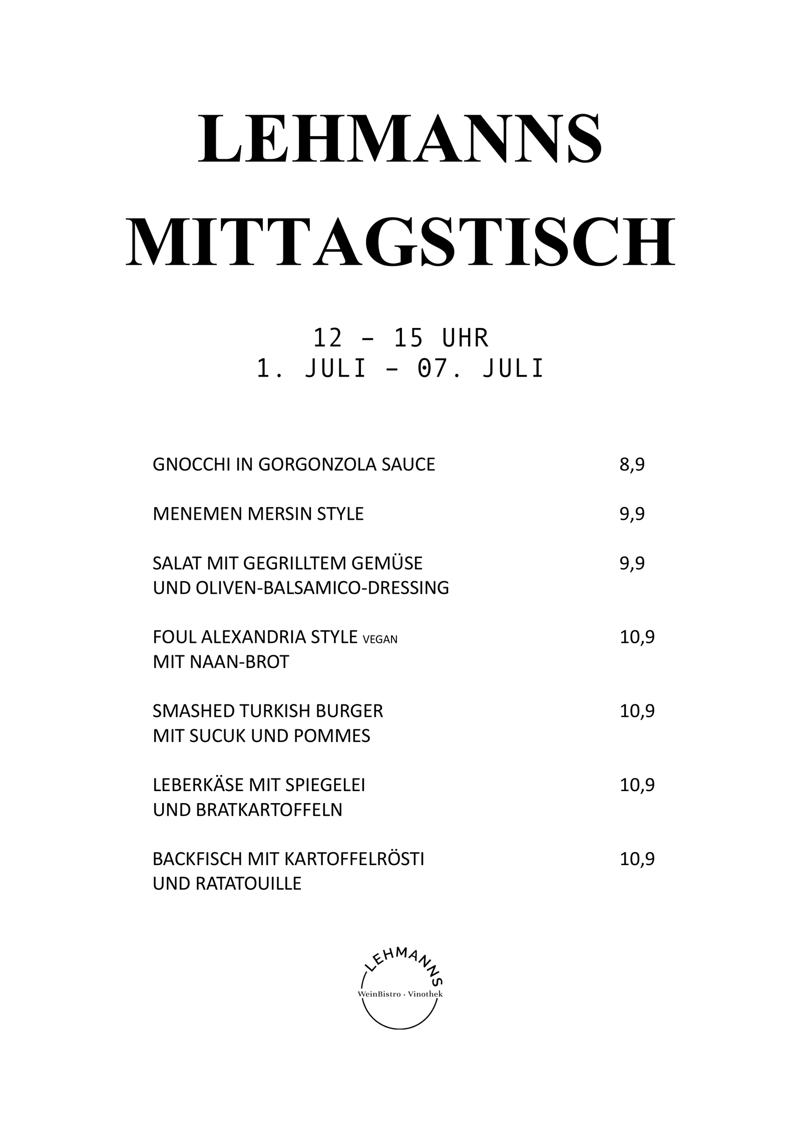 Hier findet ihr unsere Karte für den wöchentlich wechselnden Mittagstisch.