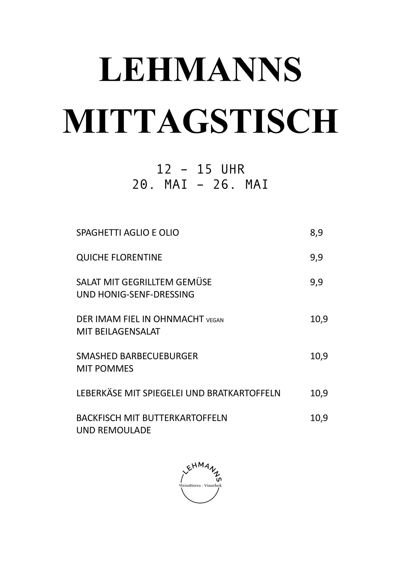 Hier findet ihr unsere Karte für den wöchentlich wechselnden Mittagstisch.